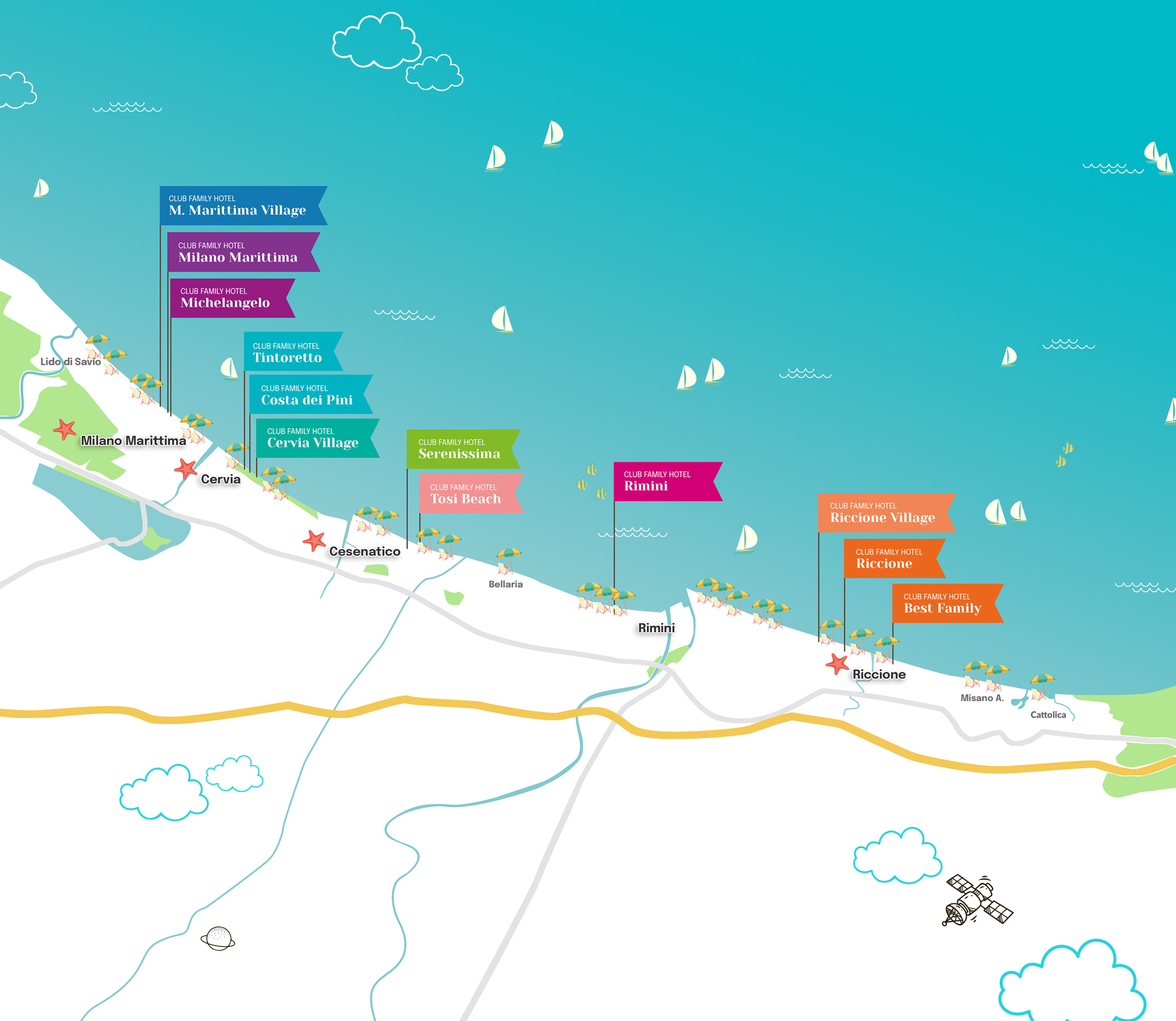 Ciao famiglia, vogliamo raccontarti perché noi Club Family Hotel in Romagna siamo la catena di alberghi per famiglie più amata e premiata dai propri ospiti secondo Tripadvisor. Se invece ci conosci già, lo sai molto bene il perché, ma magari non sai quanti siamo e dove siamo: allora scoprici tutti.