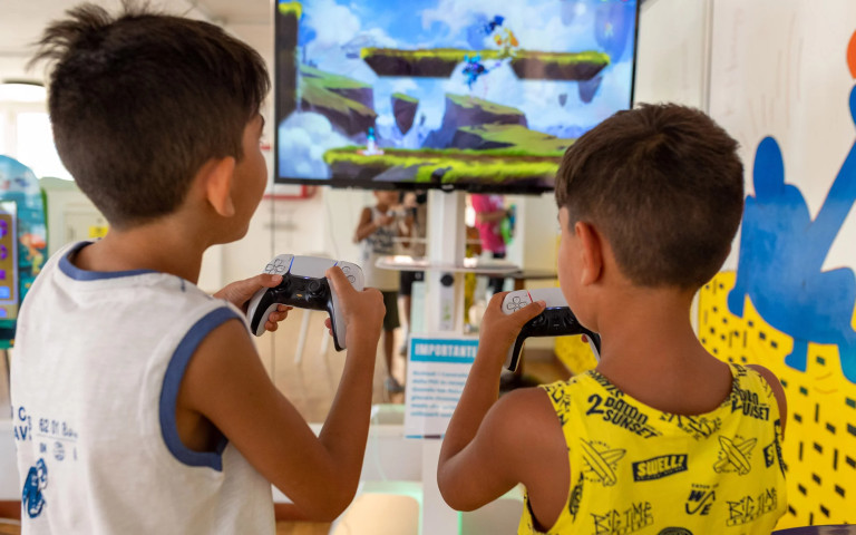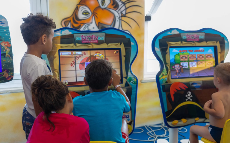 Ma sappiamo molto bene che il gioco più si cresce più va costruito e organizzato, dato che diventa meno fisico e più digitale e che le avventure dal gonfiabile si trasferiscono al virtuale, perciò abbiamo realizzato un Corner Game in tutti i Club Family Hotel.