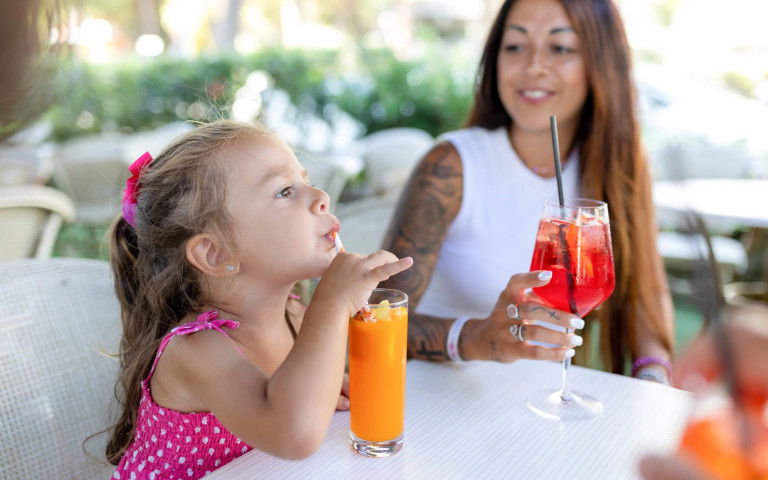 Con la nostra esclusiva formula Club Family All Inclusive®Open Bar H24, infatti, tutte le bevande, dall'acqua alla birra, dai succhi alla caffetteria analcolica, sono sempre incluse e illimitate per tutto il soggiorno e per tutta la famiglia! Ai pasti e lontano dai pasti, al bar a bordo piscina, in spiaggia o in giardino, da noi è sempre la perfetta occasione per alzare i calici e brindare a una magica vacanza estiva al mare insieme alla propria famiglia.